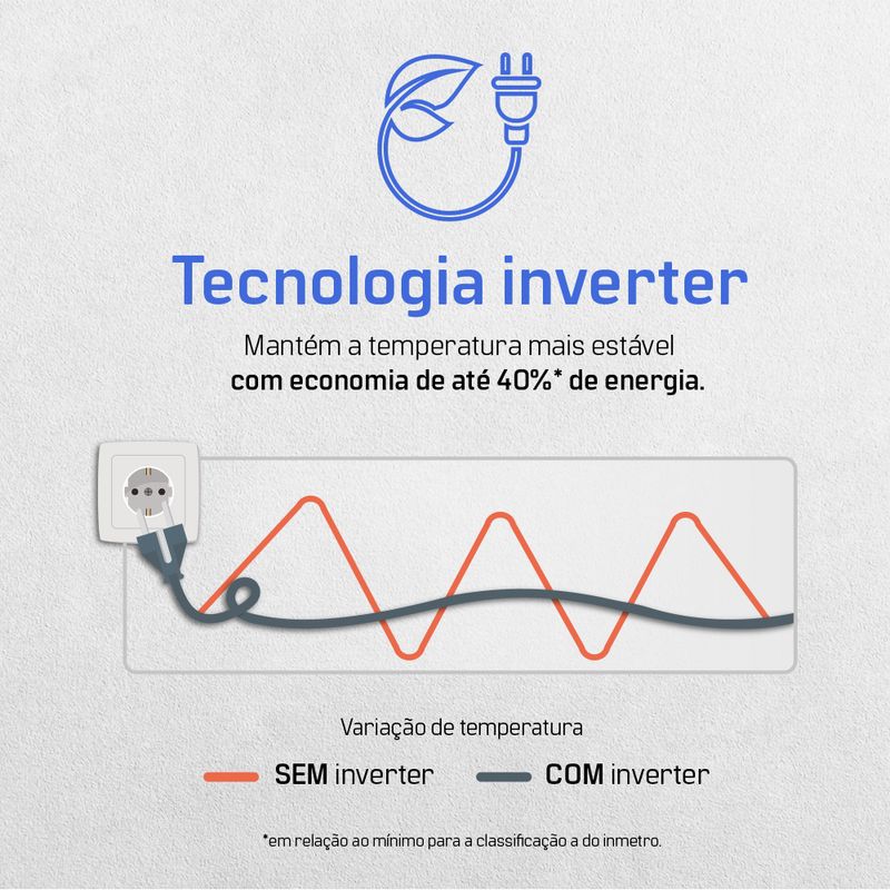 Tecnologia Inverter com Ciclo Quente e Frio Mais conforto térmico com menor consumo de energia.