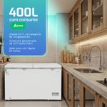 400 L de capacidade com cara de estoque profissional Volume ideal para negócios de alimentação e famílias grandes, permitindo compras em maior quantidade sem lotar a geladeira principal.
