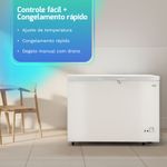 Destaques técnicos e funcionais -300 L de capacidade total. -ENCE +++, 32,94 kWh/mês, -18 °C. -Refrigeração Direta e degelo manual com dreno. -Controle mecânico com Congelamento Rápido. -Classe Climática T. -R600a / ciclopentano. -127 V ou 220 V (60 Hz) — não é bivolt.