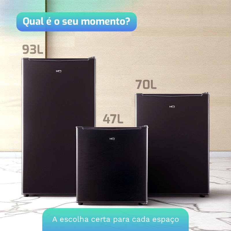 Seja para equipar o seu quarto, escritório, hotel, consultório ou qualquer ambiente que mereça mais praticidade, a linha de frigobares HQ entrega o essencial com o máximo de qualidade. Disponíveis em três tamanhos 47L, 70L e 93L nossos modelos foram desenvolvidos para atender diferentes perfis de uso com o mesmo padrão de excelência: design funcional, operação silenciosa, gás ecológico e controle de temperatura ajustável.