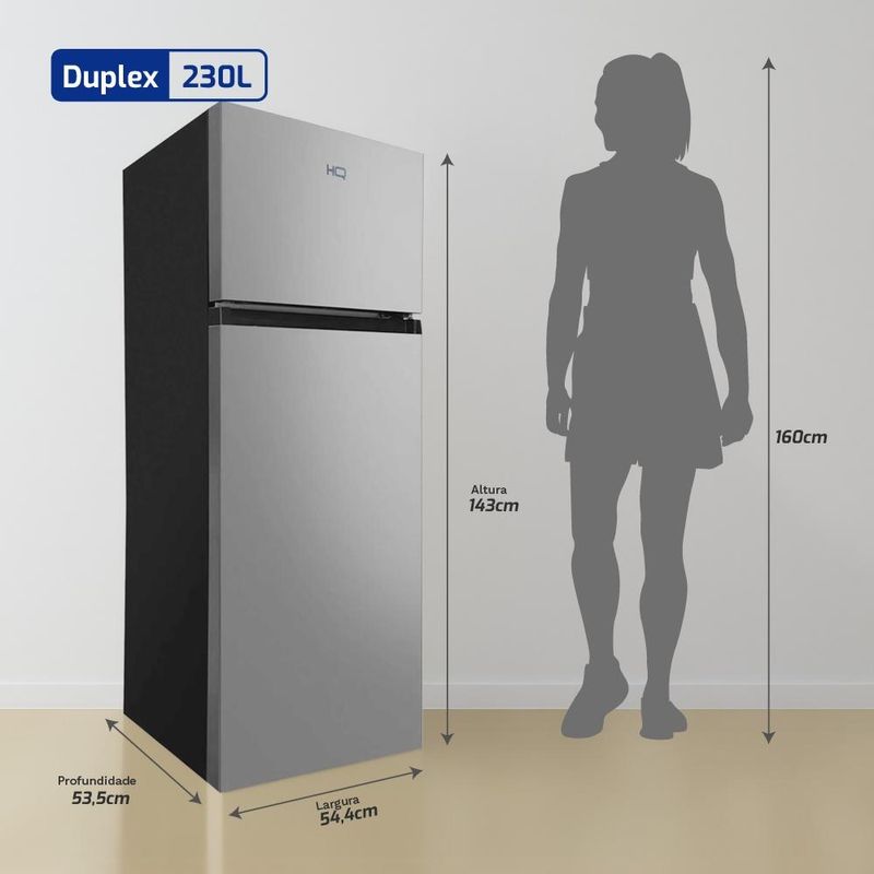 Geladeira Refrigerador HQ 230 Litros Duplex Defrost, Baixo Consumo A+++ Cinza HQ-230RDFS