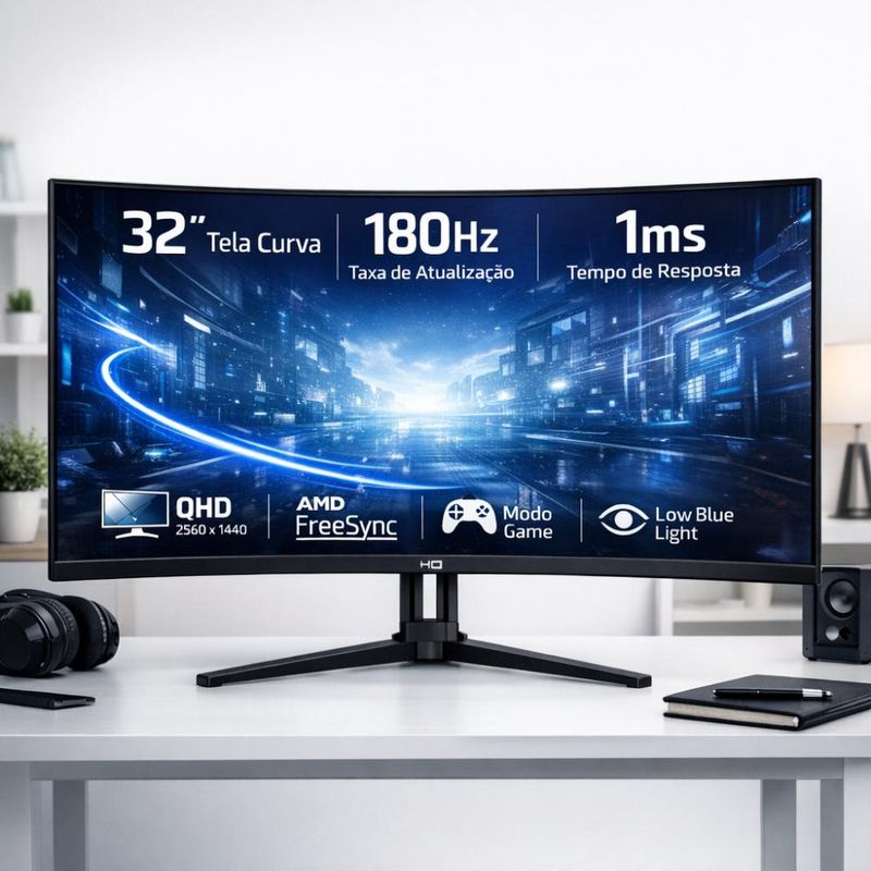 Monitor Gamer LED Curvo HQ 32” – Imersão Quad HD (QHD), Performance e Qualidade de Imagem
