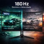 A resolução Quad HD (QHD) 2560x1440, entrega imagens detalhadas e muito mais realismo. A taxa de atualização de 180Hz garante cenas fluidas e movimentos sem borrões. O tempo de resposta de 1ms (MPRT) elimina atrasos e fantasmas na tela, proporcionando precisão em cada ação.